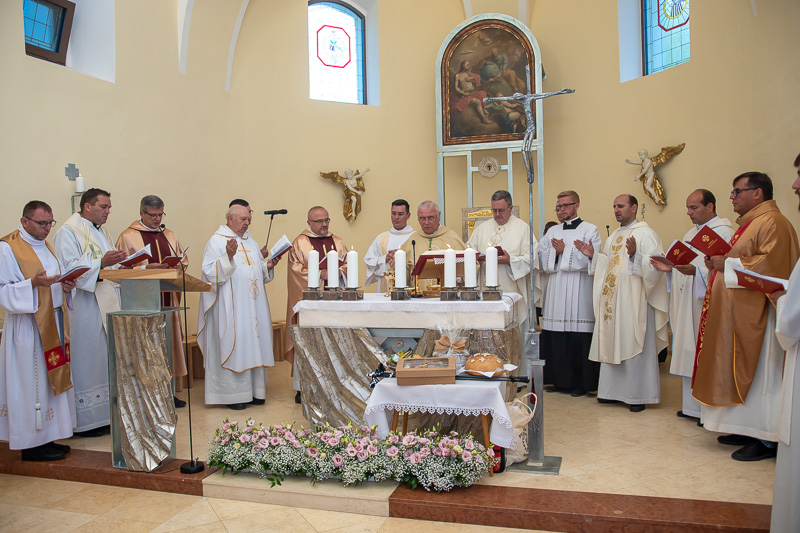 V Smoleniciach si pripomenuli sto rokov od narodenia Jozefa Medového. Hlavným celebrantom bol generálny vikár Trnavskej arcidiecézy Peter Šimko (vpravo). Snímka: Maroš Stacho